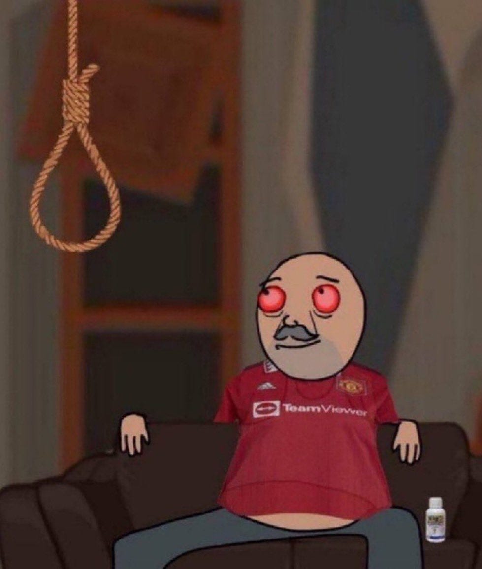 Man, I honestly don't know what to say. It would not be far-fetched to assume the Red Devils are cursed. There is a new coach now. The board finally found the cojones to give bald Ten-Haag the sack, and in return, they appointed Ruben Amorim as the new head coach. During Ten-Haag’s tenure, when results went bad, I remember how you were always pissed at his bald head sitting empty, shining on the bench, and not being able to find solutions. By the way, can you believe he got sacked three games into his tenure at Leverkusen?